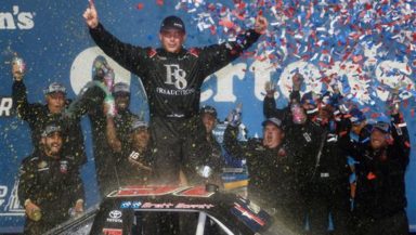 It seemed Nemechek would get win number two of the year and his second at Chicagoland but the No. 8 Chevy ran out of gas after taking the white flag and Moffitt was right there to go past him for the race win.