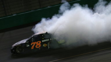 No one had anything for Truex, but Kurt Busch came up with an equalizer. As he went up in smoke with just two laps remaining, leaving the outcome in doubt as the caution forced this one into overtime. Everyone came in to pit, but one. The one they all were chasing throughout the evening.