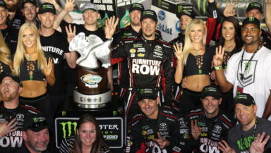 “I dominated that race from start to finish,” Truex said. “I won Stage 1 and Stage 2, then completed the day with the victory. Total domination. I whipped the field, which makes me a ‘domina-Truex.'”