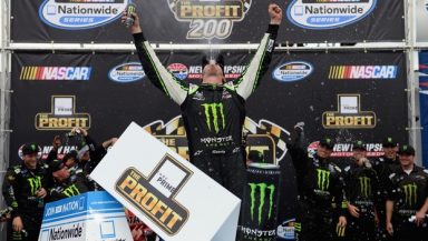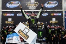 Kyle Busch, driver of the No. 54 Monster Energy Toyota, was giving thanks in Victory Lane to everyone from his higher power, lovely wife and probably his gas man for helping him survive three green-white-checkered restarts to score the Nationwide Series win in the CNBC Prime’s The Profit 200 at New Hampshire Motor Speedway.