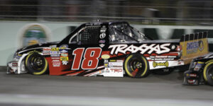 From 36 to go to 17 to go, Busch worked his way from 22nd to third and wasn’t done yet. Busch worked on closing in on the back of Hornaday. It was a caution for Sauter spinning out with eight to go that would bring them together however, resulting in a late race restart.