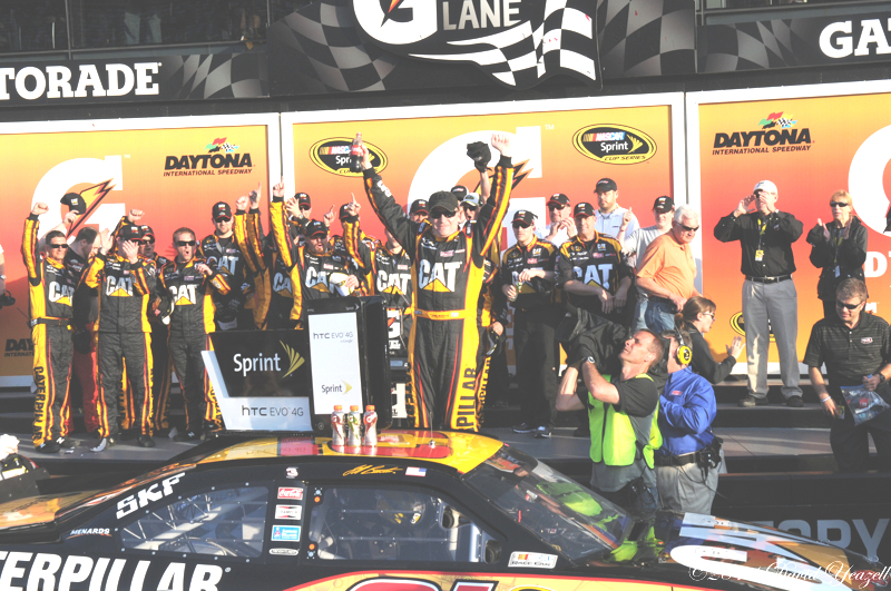 [/media-credit]”It’s a shame two cars can’t fit in here,” Burton said in Victory Lane. “Clint and I decided that we would find each other early and it worked out well. For us, this is a good start and being in Victory Lane means a great deal.”