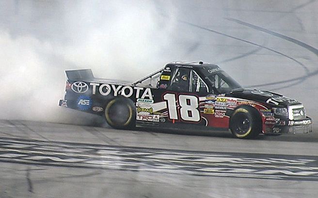 Checkered Flag: Kasey Kahne wins the Too Tough To Tame 200. In his four truck starts, he has three wins a second place finish.