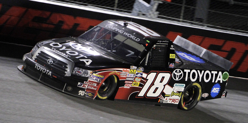 [/media-credit]HOORAH to Sprint Cup driver Kasey Kahne who spent his weekend off driving a Toyota Truck owned by Kyle Busch Motorsports last Saturday at the Darlington Raceway. Kahne and KBM were a formidable tandem, during Saturday’s Too Tough To Tame 200, and led 96 of the 147 laps in the race during the course of a most impressive performance. Kahne, who makes a once in a great while guest appearance in the NASCAR Camping World Truck Series, now has four series starts resulting in three wins and a second place finish.
