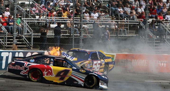 Surprising: At a short track like Martinsville, big wrecks are not the norm. But there was a monster of a hard hit when Martin Truex, Jr. lost his brakes and pummeled himself into the wall, taking innocent bystander Kasey Kahne with him.