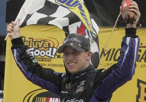 Kyle Busch finished third, Paul Menard fourth and Carl Edwards finished fifth.