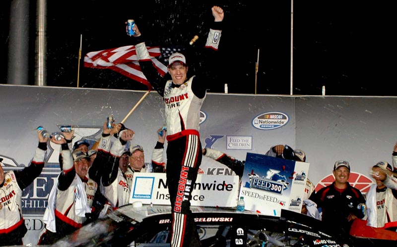 Brad Keselowski dominated the Feed the Children 300 at the Kentucky Motor Speedway leading 132 of 200 laps. His closest challenger, Kevin Harvick had an apparent miscue from his crew chief that cost him valuable time as there was some confusion as to whether Harvick was stopping for fuel in the final 10 laps. As Harvick slowed, Keselowski pulled away further even though Harvick’s crew chief called off the stop. That allowed Keselowski to conserve fuel more. The final 61 laps were run under green flag conditions.