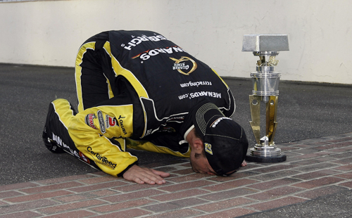 Over the previous weekend in Indianapolis we witnessed the emotional joy of another first time winner during the NASCAR Sprint Cup’s 2011 season. We witnessed the joy of a father and son moment in victory lane and we watched the race winner’s father, after 35 years of sponsoring cars at Indy events, get the opportunity to join his son for the ceremonial kissing of the bricks. OH yeah, a high profile NASCAR Nationwide Series debut was halted by a double back flip on a motorcycle. With those thoughts in mind, let’s begin with: