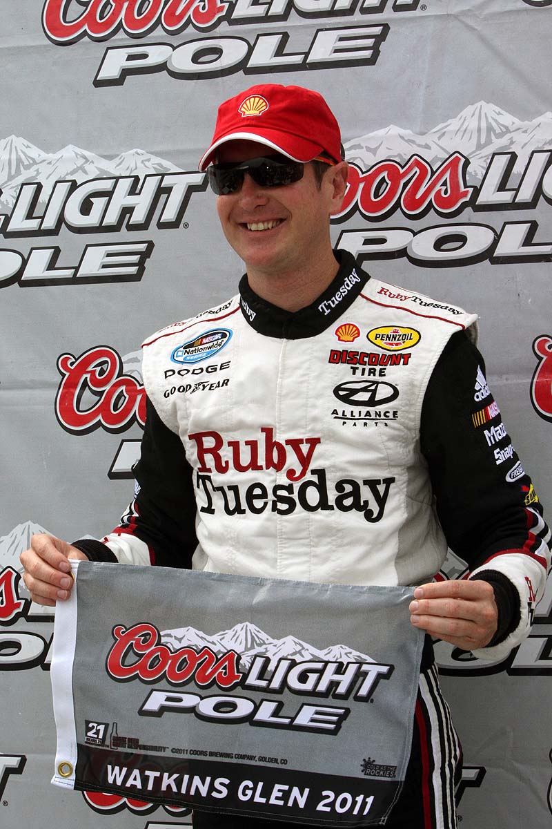 Busch’s speed of 123.241 was good enough to take the top starting spot for this afternoon’s Zippo 200 here at The Glen. The previous track record has only held up for one year as Macos Ambrose set fast lap last year in his NASCAR Nationwide Series Car with a speed of 122.410.