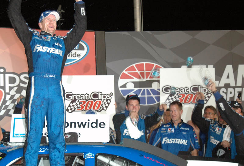 Edwards said in victory lane, It was a big week for Fastenal with the announcement we made.” He also psoke about a visit to a cancer camp, “I was inspired by going to the Aflac cancer camp, he said. He then mentioned the racing, “I’ve got a great team. We raced as hard as we could. It was a blast. We raced hard and we raced clean. I raced with Kyle (Busch), and Kevin (Harvick) and Kasey (Kahne) and it was all good racing.”
