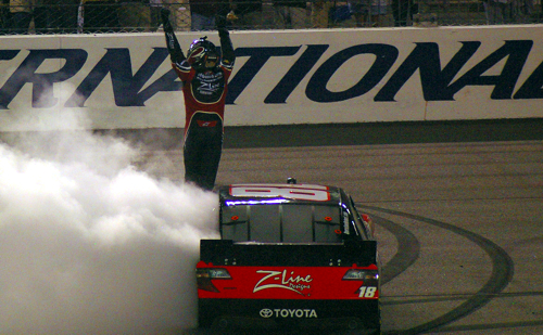 [/media-credit]Kyle Busch won his 51st Nationwide race of his career, his eighth this season in 19 starts by edging Edwards out at the finish line by just .696 seconds., followed by Ricky Stenhouse Jr., Ryan Truex and Kenny Wallace rounding out the Top-five.