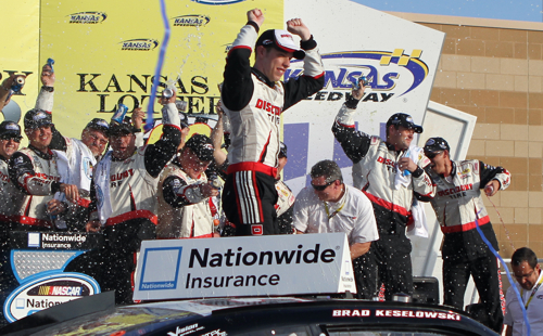When the checker flag waved, Keselowski would claim his first Nationwide Series (NNS) win at Kansas Speedway.