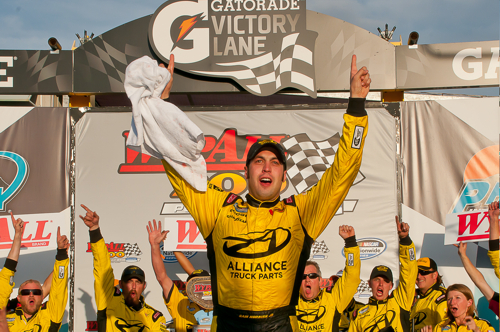 Hornish’s win didn’t come by surprise or late race strategy. The No. 12 Alliance Dodge was in contention all day, leading 62 of 200 laps on their way to victory lane. Running a partial schedule with Penske Racing, team owner Roger Penske says that Hornish been humbled the last 12-18 months. Coming from the IndyCar Series where he’s won races and championships, it hasn’t been the same in NASCAR.