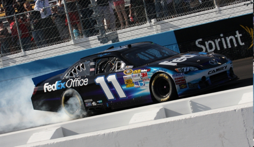 Not Surprising: With a championship level crew chief in Darian Grubb atop his pit box, it was not surprising that his new driver Denny Hamlin raced his way right to the checkered flag. After a spectacular burnout, the driver of the No. 11 FedEx Office Toyota paid homage to his crew chief and team from Victory Lane.