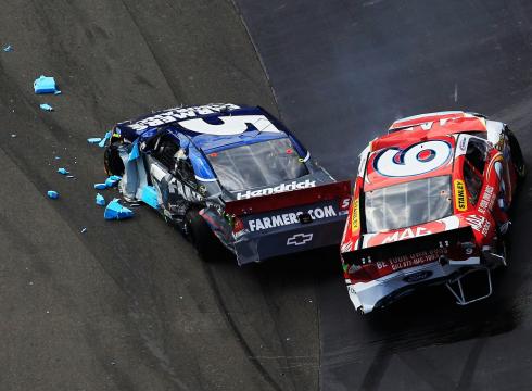 [media-credit name=”By Chris Trotman, Getty Images” align=”alignright” width=”272″][/media-credit]”There is no reason to force the issue at all,” Kahne said. “I’m under Regan Smith, as slow as he was — I knew when my spotter cleared me — I’d be clear on exit (of the corner). (Smith) was there on exit. I listened too much to my spotter, I guess.”