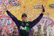 “I just can’t thank everyone at FedEx enough for putting this together and putting me in the driver’s seat. Great day for our race team — the pit crew did amazing there on that green flag pit stop. Darian (Grubb, crew chief) made a great call to bring me in one lap early and just a great team effort today. This has been a great weekend and we just had a solid car all week,” said Hamlin.