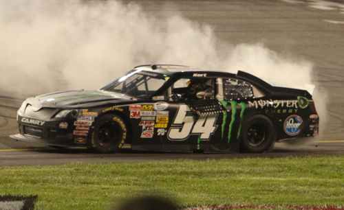 [/media-credit]“To have Kurt do it, doesn’t bother me one bit,” Kyle says. “It’s just an awesome feeling for myself, for (wife) Samantha, for grandma, for my dad. This is really cool. All of these guys at Kyle Busch Motorsports – great job. This is the most emotional I have been for a win. This is cool.