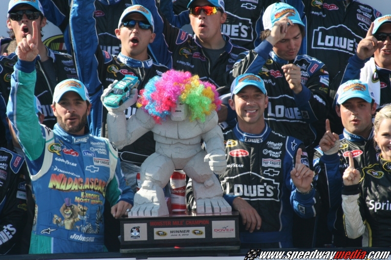 Johnson not only led 289 of the 400 laps for his seventh Monster Mile win, but he also tied the record of Richard Petty and Bobby Allison for most ever career wins at Dover International Speedway.