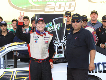 [/media-credit]After scoring six victories on the short tracks in the span of two years, Chris Buescher led the final 14 laps on his way to his first speedway victory in the RainEater Wiper Blades 200 at Michigan International Speedway.