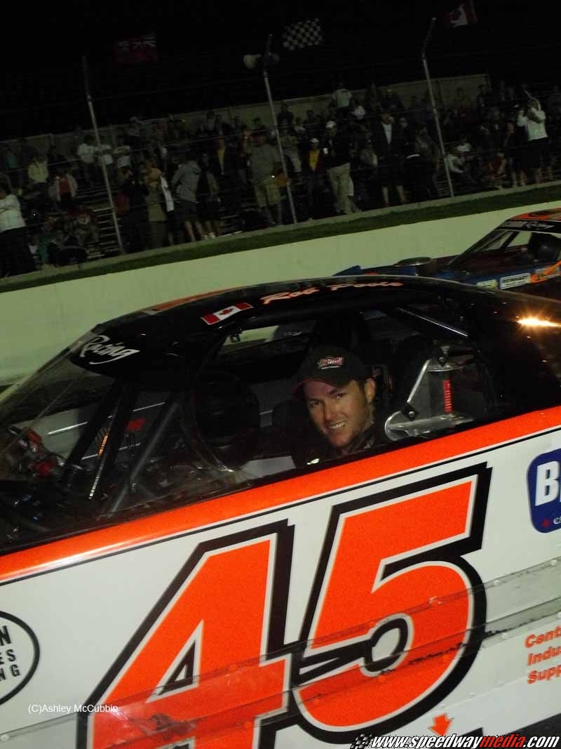 “Hopefully we don’t too crashing and banging and wrecking,” he said before the race. It was predicted that it’d be a caution filled event due to how tight Barrie Speedway is.
