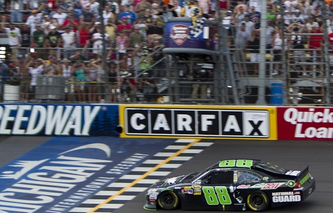 [/media-credit]After almost four years to the day Dale Earnhardt Jr. is back in victory lane. Is it a coincidence that he won his last race at Michigan International Speedway (MIS) on June 17th 2008? It is Father Day Sunday and what a gift in memory of his Dad, in honor of Rick Hendrick and to all his fans.