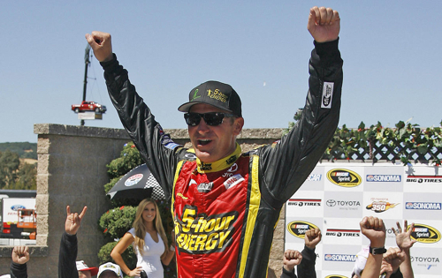 Clint Bowyer surprised fans when he qualified in sixth position for the Toyota/Save Mart 350 at Sonoma. With the overall strength that Michael Waltrip Racing has shown in 2012, it wasn’t much of a surprise to the world when the No. 15 5 Hour Energy Toyota crossed the finish line first on Sunday. Like most races at Sonoma, fuel mileage was an issue in the closing laps when the race finished under green-white-checkered. Bowyer did run out of fuel – on his victory lap.