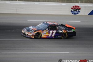 [/media-credit]On Saturday night, Denny Hamlin announced on Twitter that he has resigned to continue racing the No. 11 FedEx Toyota for Joe Gibbs Racing. Hamlin, who sits 8th in the 2012 Sprint Cup Series points, has spent his entire career with Joe Gibbs Racing.