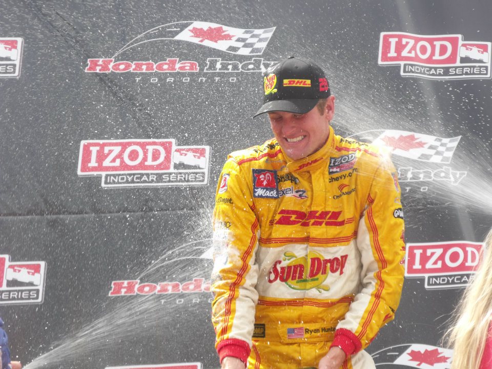[/media-credit]Ryan Hunter-Reay would take the lead on lap 57 after his pit stop, drive away from the field and hold Charlie Kimball off on a late race restart to win the Honda Indy Toronto for his third straight win in a row. Hunter-Reay won the previous two oval races – Milwaukee and Iowa.