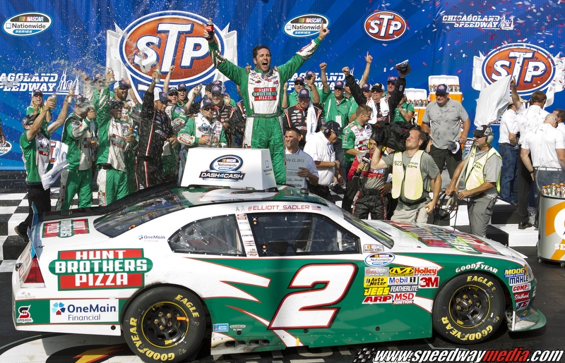 [/media-credit]Elliott Sadler won the NASCAR Nationwide Series (NNS) STP 300 at Chicagoland Speedway on Sunday. Sadler led 35 laps and captured his first win at Chicagoland and the third of the season.