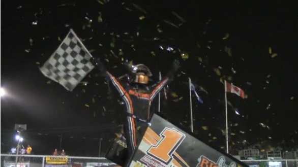 A-Main – (25 Laps) – 1. 1-Sammy Swindell [1] [$10,000]; 2. 9-Joey Saldana [6] [$5,500]; 3. 11-Steve Kinser [2] [$3,200]; 4. 4-Cody Darrah [7] [$2,800]; 5. 7-Craig Dollansky [4] [$2,500]; 6. 5W-Lucas Wolfe [3] [$2,300]; 7. 55X-James McFadden [13] [$2,200]; 8. 63-Chad Kemenah [9] [$2,100]; 9. 1Z-Jessica Zemken [10] [$2,050]; 10. 15-Donny Schatz [8] [$2,000]; 11. 11K-Kraig Kinser [5] [$1,500]; 12. 29-Kerry Madsen [11] [$1,200]; 13. 25-Michael Parent [14] [$1,100]; 14. 6-Bill Rose [12] [$1,050]; 15. 3-Dale Gosslin [23] [$1,000]; 16. 36-Mike Stelter [20] [$900]; 17. 24K-Devin Caron [17] [$800]; 18. 15AW-April Wilson [22] [$800]; 19. 84-Tyler Rand [18] [$800]; 20. 8B-Alain Bergeron [15] [$800]; 21. 46-Kayle Robidoux [21] [$800]; 22. 42W-Rick Wilson [16] [$800]; 23. X2-Curtis Bradshaw [19] [$800]; 24. 422-Etienne Girard [24] [$800]. Lap Leaders: Sammy Swindell 1-25. KSE Hard Charger Award: 3-Dale Gosslin [+8].