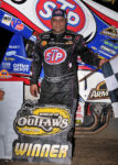 On Saturday Night during the A Main, teammates Donny Schatz and Steve Kinser got into a vicious tangle that would send Donny head on into the end of an inside retaining wall. The impact would send his winged sprint car into a series of wild and vicious flips leaving him in the infield. Schatz who climbed from the car under his own power took a few steps and then went down to his knees on the ground a short distance from the car. Although Schatz would be released by paramedics the impact and the flips were incredibly hard and bone jarring. Late Saturday night Schatz’s True Speed Communications representative would give the following update on his condition, “Donny is a little sore. But he is racing tonight.” During the broadcast by the World of Outlaws it would be reported that Schatz was competing with a shoulder injury. His performance through out the night would not give any indication that 4 time Outlaws Champion Donny Schatz was anything but on his A game.