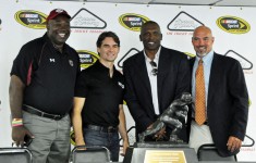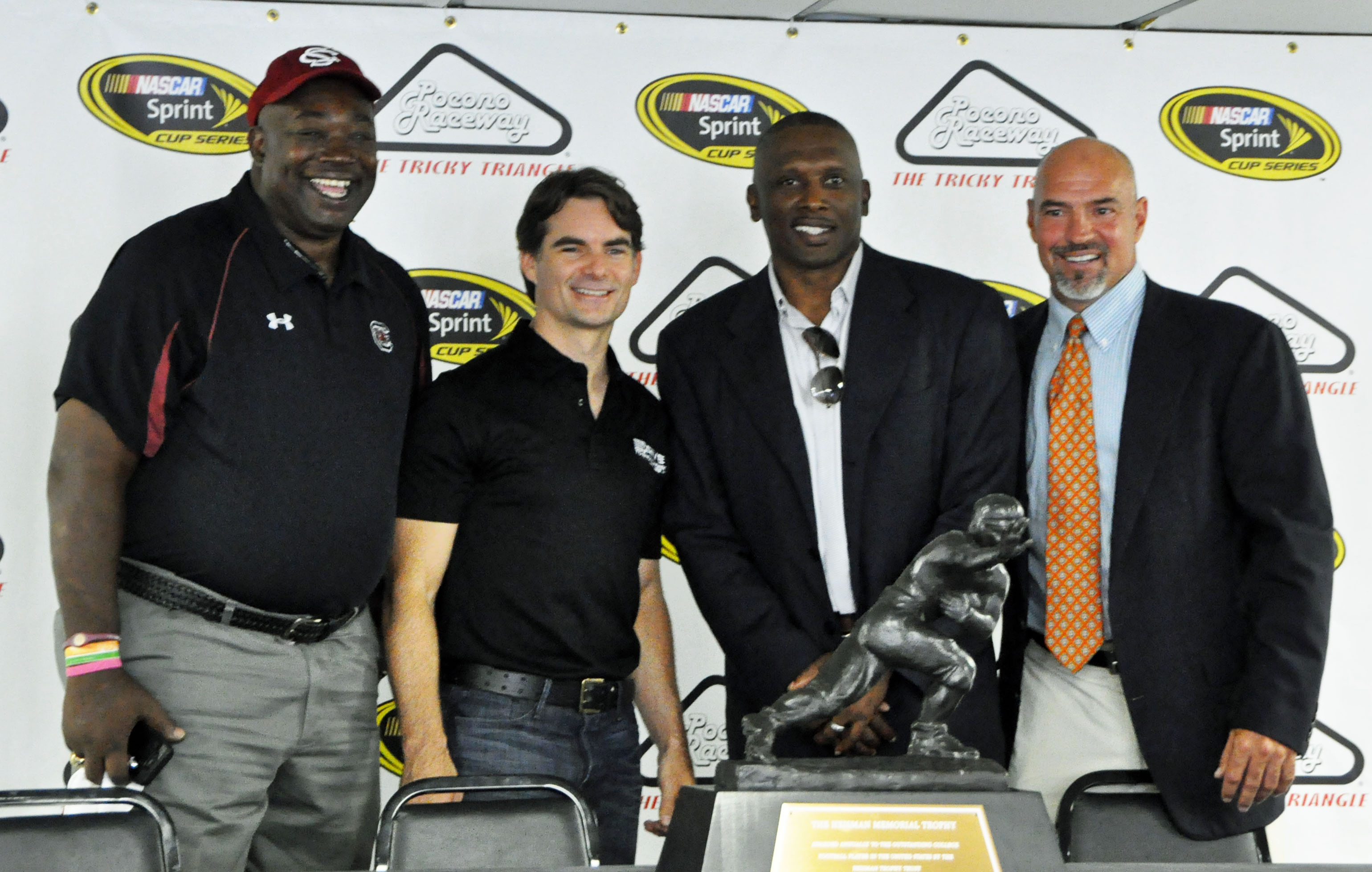 The driver of the No. 24 Drive to End Hunger Chevrolet was accompanied by Heisman Trophy Trustee Jim Corcoran and Heisman Trophy winners George Rogers and Tim Brown for the announcement of the award at Pocono Raceway.