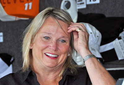 [/media-credit]Although Denny Hamlin’s mother Mary Lou spends almost every weekend at the track, working her son’s merchandise hauler and interacting with the fans, she cherished a very special moment this past weekend at Pocono.
