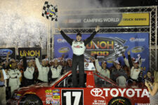 “Oh man, what an awesome feeling. First, I want to apologize to the guys at home for the burnout and hurting the truck. Thank you guys for an awesome Toyota Tundra. These guys right here worked their butts off like they do week in and week out.” Peters said.