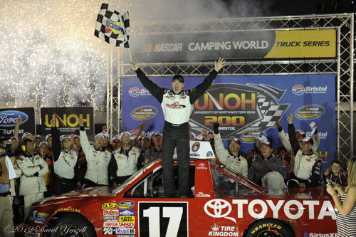 [/media-credit]Timothy Peters dominated the NASCAR Camping World Truck Series (NCWTS) UNOH 200 at Bristol Motor Speedway on Wednesday night. Peters led all 204 laps run in route to his second victory of the season and the fifth of his career.