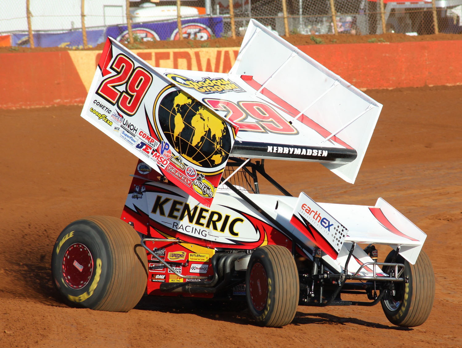 A-Main – (25 Laps) – 1. 29-Kerry Madsen [1] [$8,000]; 2. 1-Sammy Swindell [4] [$4,000]; 3. 7-Craig Dollansky [5] [$2,500]; 4. 18H-Jac Haudenschild [13] [$2,200]; 5. 63-Chad Kemenah [10] [$2,100]; 6. 18-Travis Jacobson [8] [$2,000]; 7. 39C-Travis Rilat [22] [$1,800]; 8. 9-Joey Saldana [11] [$1,600]; 9. 7S-Jason Sides [9] [$1,500]; 10. 6-Bill Rose [19] [$1,300]; 11. 15-Donny Schatz [2] [$1,200]; 12. 26-Sam Hafertepe Jr [24] [$1,100]; 13. 4-Cody Darrah [17] [$1,000]; 14. 59-Eric Fisher Jr [16] [$700]; 15. 4X-Toni Lutar [20] [$600]; 16. 17J-Jayme Barnes [21] [$600]; 17. 11K-Kraig Kinser [7] [$600]; 18. 11-Steve Kinser [12] [$600]; 19. 55-Trey Starks [23] [$600]; 20. 57-Shane Stewart [3] [$600]; 21. O-Jonathan Allard [15] [$600]; 22. 5W-Lucas Wolfe [14] [$600]; 23. 98M-Mitch Olson [18] [$600]; 24. 83-Tim Kaeding [6] [$600]. Lap Leaders: Donny Schatz 1-10, Kerry Madsen 11-25. KSE Hard Charger Award: 39C-Travis Rilat [+15].