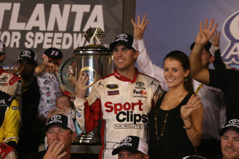 [/media-credit]Denny Hamlin held off Jeff Gordon on Sunday and won the NASCAR Sprint Cup Series AdvoCare 500 Atlanta Motor Speedway. This was Hamlin’s fourth win of the season, the most of any driver thus far and places himself in position to top the standings when the 12-driver Chase starts after next weekend’s race at Richmond.