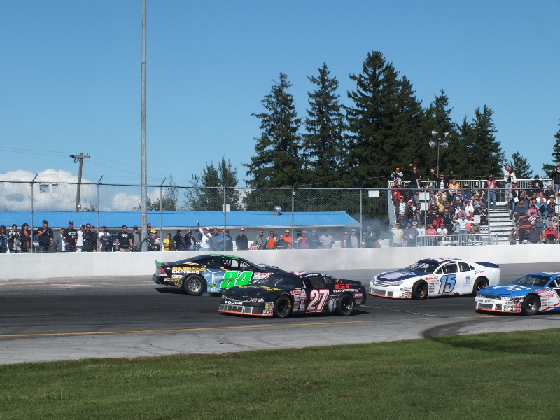 [/media-credit]Coming into the Wahta Springs 300 at Barrie Speedway this past weekend, D.J. Kennington led the point standings by 33 points over Andrew Ranger. However, following a fuel pump problem on lap 153, Kennington would score a 21st first place finish and now only leads Ranger by 14 points.