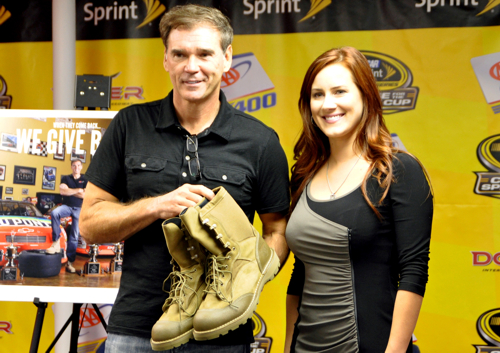 Evernham was putting his boots on as part of the Boot Campaign to raise awareness and funds for wounded warriors and troops as they return home.