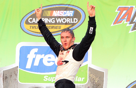 Kligerman won’t be going anywhere, anytime soon. The last few months he’s feared that his time in NASCAR was going to be over. Thanks to conquering his second worry, winning a NASCAR Camping World Truck Series (NCWTS) race. Saturday at Talladega he was finally in the right place at the right time, earning the win as the caution fell on the final lap when a wreck broke out on the backstretch.