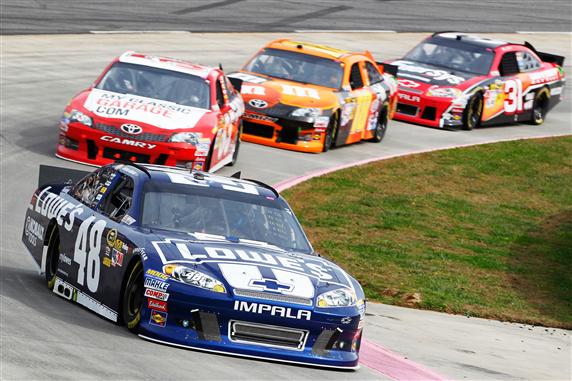 [/media-credit]Jimmie Johnson would take the lead late in the TUMS Fast Relief 500 to take the victory and the points lead, two points ahead of Brad Keselowski.