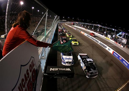 [/media-credit]In a late green white checkered, Brian Scott would take the lead from Kyle Larson and lead the final laps to win the Lucas Oil 150 at Phoenix International Raceway for Kyle Busch Motorsports’ first win of 2012.