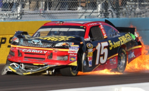 Surprising: Chaser Martin Truex, Jr., racing no doubt with a heavy heart for his home state of New Jersey ravaged by Hurricane Sandy, saw his day end before it even got started. The driver of the No. 56 NAPA Auto Parts Toyota had an engine failure and finished 43rd.