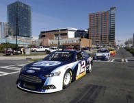 NASCAR Sprint Cup Series champion Brad Keselowski leads a parade of Ford Racing cars through the streets of Charlotte on the fourth and final day of the NASCAR Sprint Media Tour hosted by Charlotte Motor Speedway. (CMS/HHP Photo)