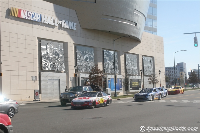 Best Eye-Opening Team Function – Roush-Fenway’s presentation at the Hall of Fame. After a buttoned-downed presentations featuring Greg Biffle, Carl Edwards, Trevor Bayne, Ricky Stenhouse, Jr., and Travis Pastrana, in the Hall’s theatre. Later, the drivers moved to their stations overlooking the Hall exhibits for interviews. Soon, we were told to move to the outside plaza for the Ford event. The event was each Ford team would be driving their 2013 cars through the streets of Charlotte. One by one, the new Fusions came out of the garage under the Hall—Biffle was first followed by Keselowski, Logano, Edwards, Stenhouse, Bayne, David Ragan, David Gilliland, and Casey Mears. An F-150 truck of photographers and a production Fusion led the parade with drivers doing burnouts and generally having fun. Crowds lined the streets of Charlotte and gathered at the plaza where fans could get autographs and take pictures of each team with driver and car owner present. It was something to see and created a lot of attention. Edsel Ford II and Jamie Allison also appeared to put the exclamation point on the exercise. I’ve never seen anything like it. No honorable mention. Nothing compared to that.