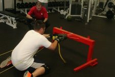Pit crews go through all sorts of training and recently Speedway Media was invited to see how the Stewart- Haas NASCAR over the wall teams train for their pit stops. They use what’s called a VertiMax system (www.vertimax.com) which they describe as “an innovative training system that allows pit crew members to simultaneously strengthen arm swing velocity and leg drive for maximum explosive speed, which is crucial when every millisecond counts.” Their product information describes how other professional or elite athletic groups use their system. The system itself has been around for more than twenty years and their current iteration of the product has been around for three years. The VertiMax rep, Michelle Grant informed me that a new wall model would be out soon.
