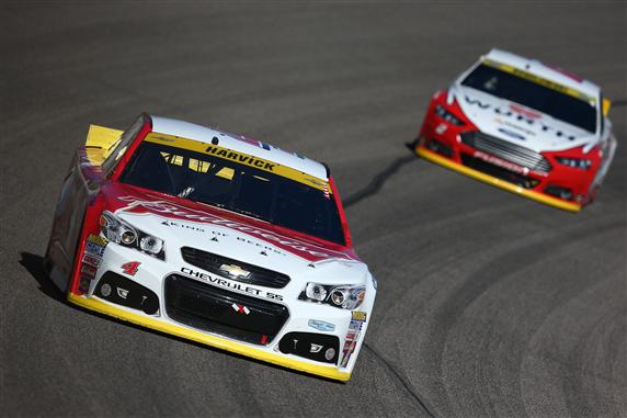 It was a wild day for Kevin Harvick. He had a flat left-rear tire early in the race and a flat right-rear tire with 53 laps to go. For the final 100 laps, he was driving the car with just his left hand and using his right to hold the gear shifter in place.