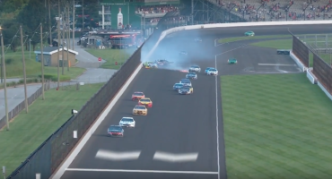 If you missed the end of yesterday’s race, what happened was Denny Hamlin spun out and turned into the wall past the exit of Turn 2, probably a result of his left-rear tire rub from contact on the restart. It triggered a three-car wreck that also collected Paul Menard and Ty Dillon.