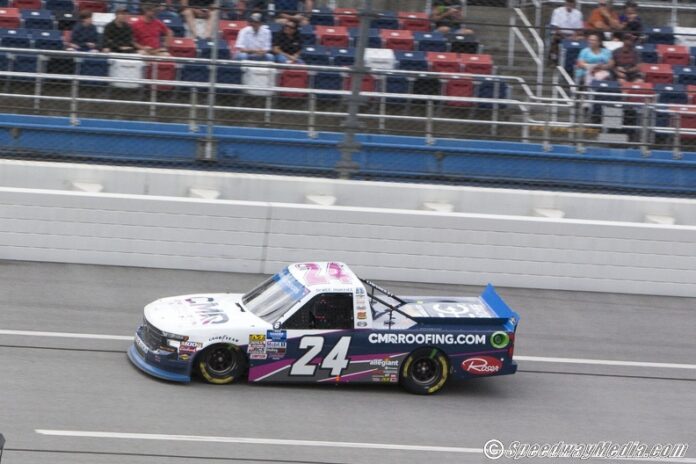 “It’s Talladega, that’s for sure,” Moffitt told MRN Radio. “I can’t thank everyone at GMS enough, we had really fast three Chevy Silverado’s and CMR, all the folks from CMR were here, which was exciting. I wish we could be in victory lane right now. Ultimately, we out pointed everyone in the playoffs and we now have a comfortable buffer. We’ll look forward to the next two races and try to win one. If not, we’ll try to make it to Homestead.”