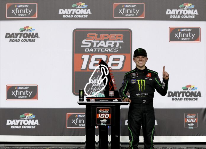 The NASCAR Xfinity Series held the Super Start Batteries 188 At Daytona Presented by O’Reilly Saturday for some road course racing. It was an extremely exciting race, and one driver got his first win in his first-ever Xfinity Series start. That driver was 18-years-old Ty Gibbs in his No. 54 Joe Gibbs Racing Toyota.